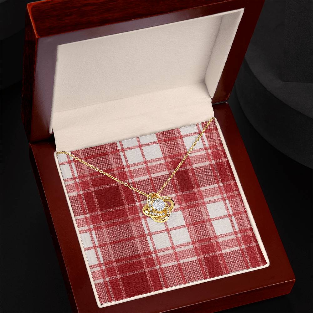 Imagine her reaction receiving this beautiful Love Knot Necklace. Representing an unbreakable bond between two souls, this piece features a beautiful pendant embellished with premium cubic zirconia crystals. Surprise your loved one with this gorgeous gift today!
